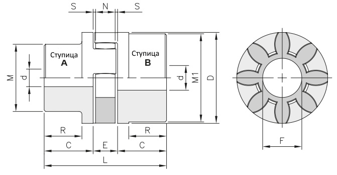 Полумуфта под расточку GEB 19-24 AL тип B dmax=24 мм (SGAB024), EMT