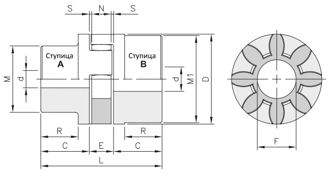 Ширина полумуфты, C, мм