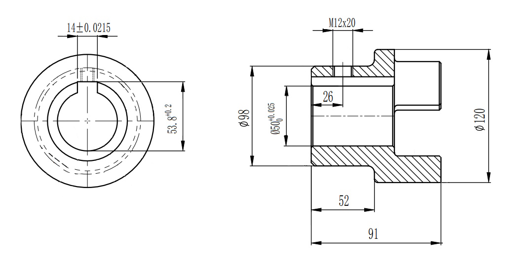Полумуфта GE 55-70 A с готовым отверстием d50 шпон паз 14х3,8мм+винт М12 СТАЛЬ, EMT