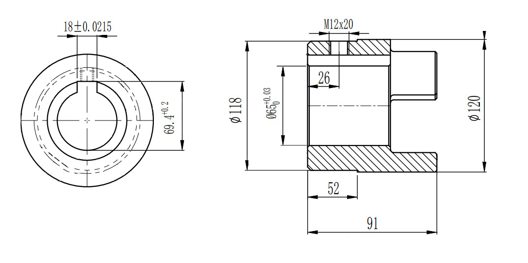 Полумуфта GE 55-70 B с готовым отверстием d65 шпон паз 18х4,4мм+винт М12 СТАЛЬ, EMT