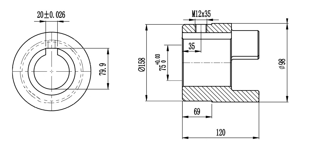 Полумуфта GE 75-90 B с готовым отверстием d75 шпон паз 20х4,9мм+винт М12 СТАЛЬ, EMT