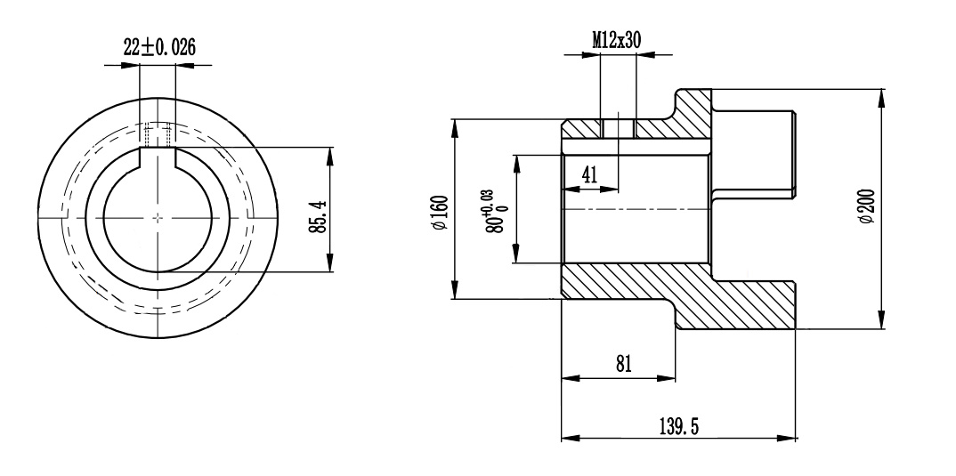 Полумуфта GE 90-100 A с готовым отверстием d80 шпон паз 22х5,4мм+винт М12 СТАЛЬ, EMT