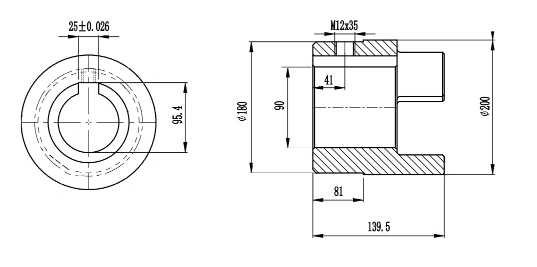Полумуфта GE 90-100 B с готовым отверстием d90 шпон паз 25х5,4мм+винт М12 СТАЛЬ, EMT