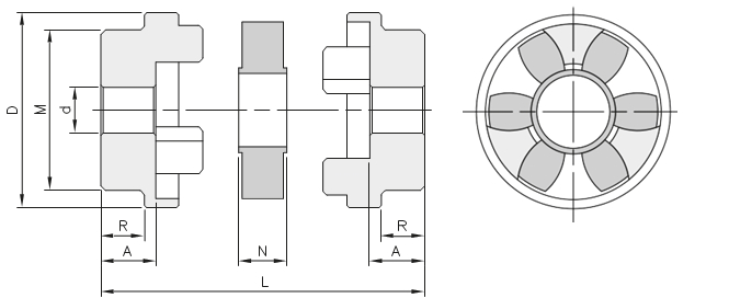 Полумуфта под расточку HRC 230, с максимальным диаметром отверстия 100 мм, и шириной ступицы 155 мм, изготовлена из чугуна и предназначена для передачи крутящего момента между двумя соостно расположнными валами. Соединительная муфта имеет длину в сборе 238 мм,и ширину упругого элемента 58 мм.