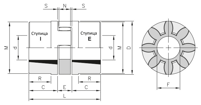 Ширина полумуфты, C, мм