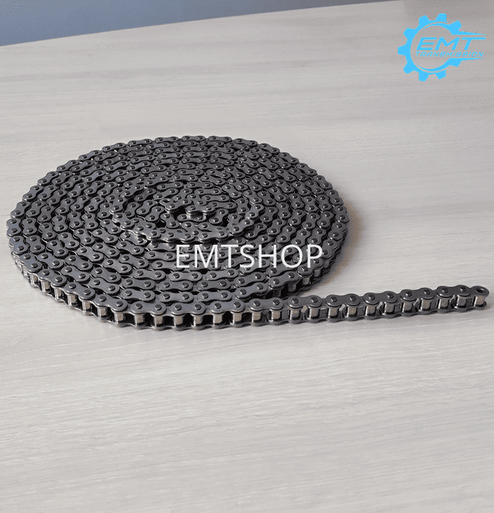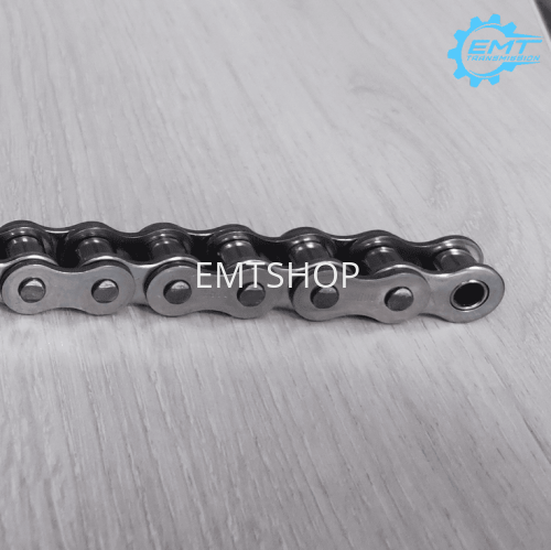 Цепь роликовая нержавеющая 08B-1SS, EMT, однорядная, европейского стандарта (DIN 8187 – ISO 606), с шагом цепи 12,7 мм, изготовлена из нержавеющей стали. Имеет ширину ролика 7,75 мм, диаметр ролика 8,51 мм. Цепь поставляется в упаковке отрезками по 5 м.
