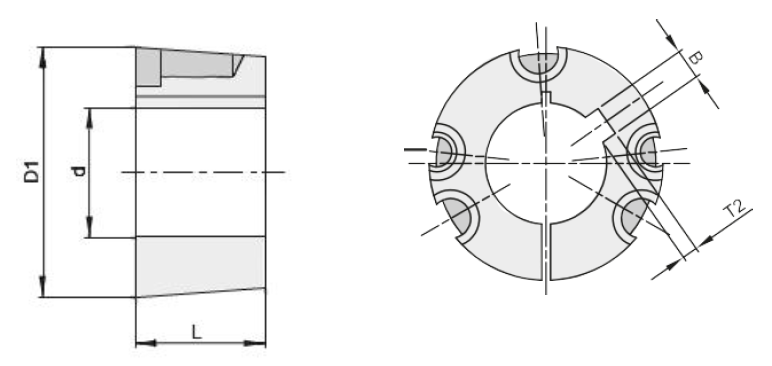 Втулка тапербуш 4030-70 мм, EMT с диаметром отверстия 70 мм, изготавливаются из высокопрочного чугуна. Данные изделия упрощают монтаж и демонтаж шкивов, звезд, муфт на валу. Наружная часть конусная. В изделии присутствует отверстие и шпоночный паз согласно DIN 6885/ BS 4235, снаружи покрыты антикоррозионным покрытием, комплектуется винтам